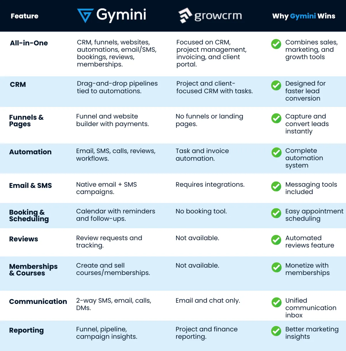 Why gyms prefer GYMINI over Grow CRM
