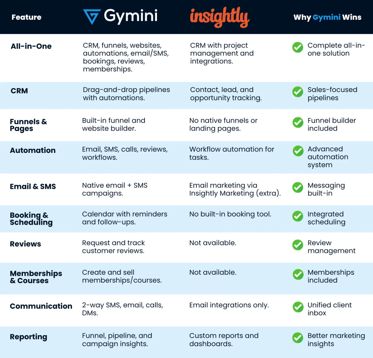Why fitness businesses choose GYMINI over Insightly CRM